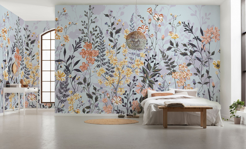 A falon lévő színes virágok tavaszias és pozitív hangulatot visznek az otthonba. Ez a motívum finom virágmintáival elvarázsolja a lakókat.