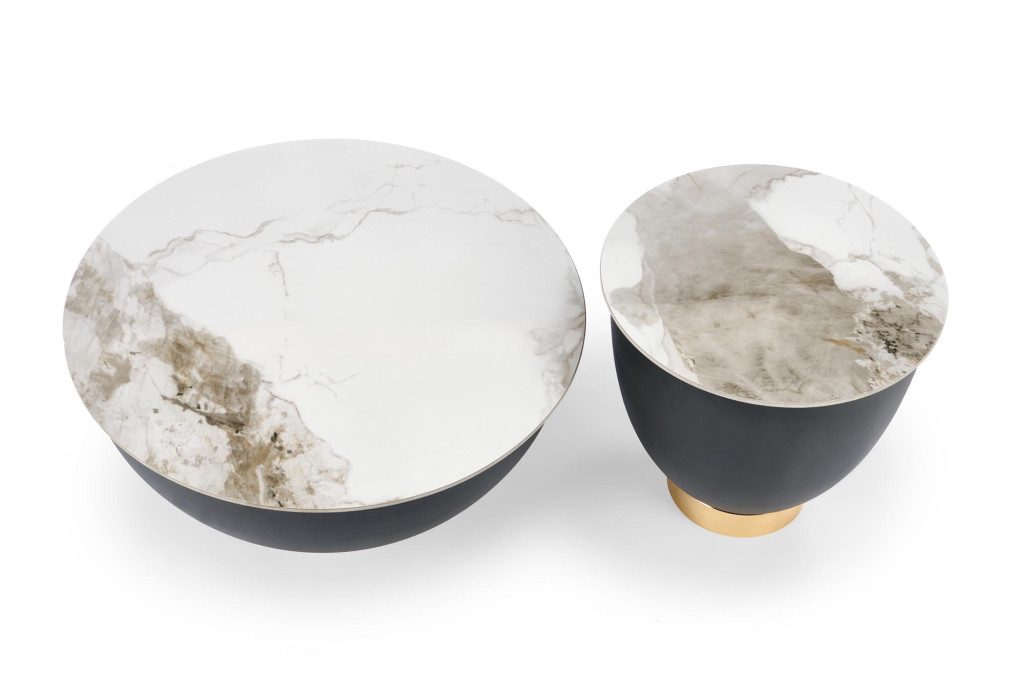 Ez a különleges lerakóasztal tökéletes példája annak, amikor a design és a praktikum találkozik. A kerámia tetőlap márvány mintázata természetes eleganciát sugároz, miközben ellenálló, időtálló és könnyen tisztítható felületet biztosít. A stabil acél váz modern, letisztult formavilágot ad a bútornak, amely harmonikusan illeszkedik kortárs, minimalista, skandináv vagy akár klasszikus enteriőrökbe is.