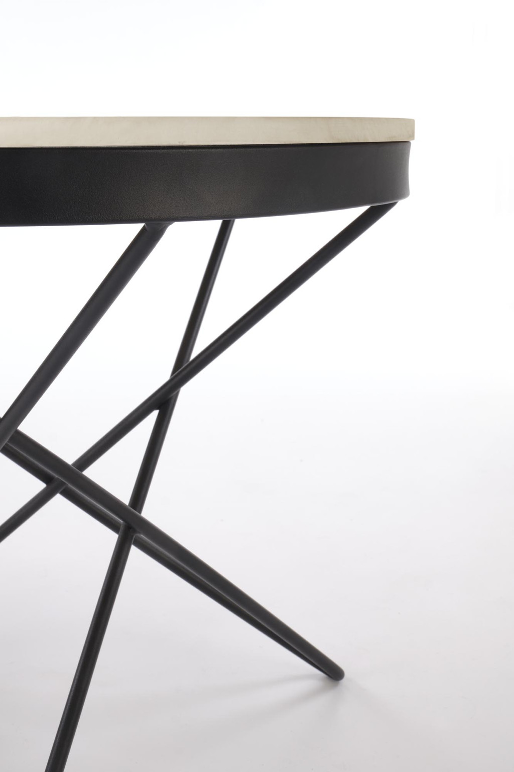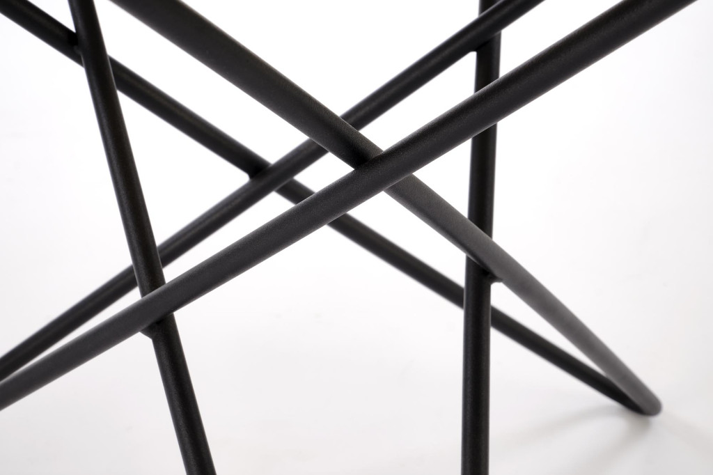 A márvány hatású asztallap természetes rajzolata finom kontrasztot alkot a fekete, vékony geometrikus lábakkal, amelyek modern, minimalista megjelenést biztosítanak. Ez a légies szerkezet nemcsak stabil tartást ad, hanem vizuálisan könnyeddé is teszi az asztalkát, így kisebb terekben sem hat nehézkesnek.