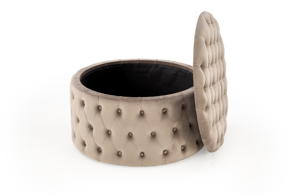 Akcióban a rózsaszín bársony szövetű puff rendelhető a készlet erejéig.