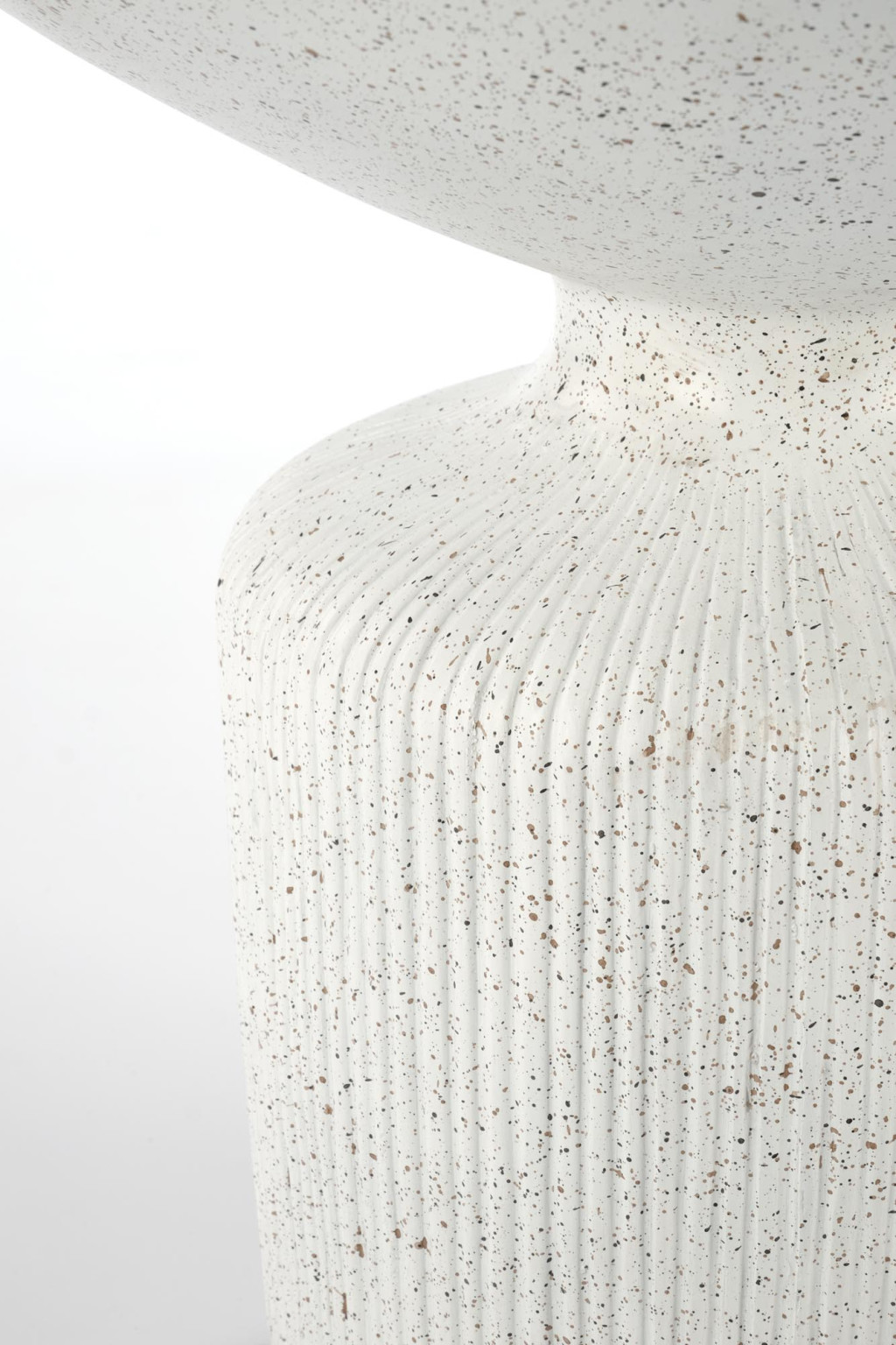 Szín és felületkezelés: matt, hófehér alap, finom terrazzo-mintával – apró színes porszemcsék elegáns elhelyezése a felületen vizuális játékosságot ad