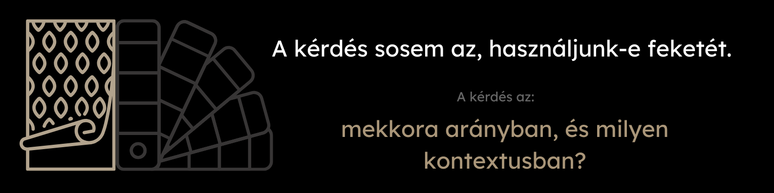 A fekete arányát nem mérni, hanem érezni kell. Egy tér akusztikai élménye, tájolása, belmagassága, használati intenzitása – mind befolyásolja, hogy mennyi fekete fér el benne